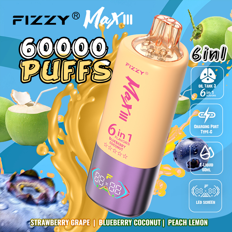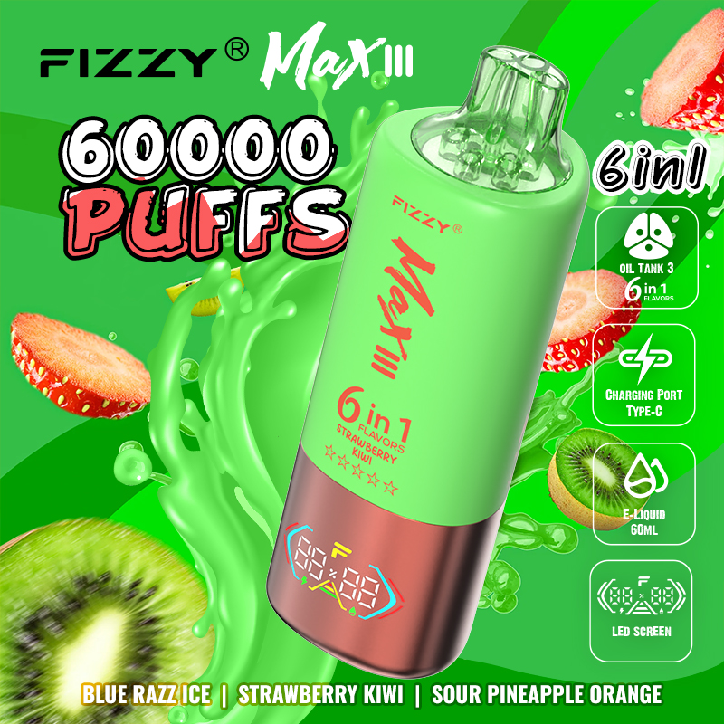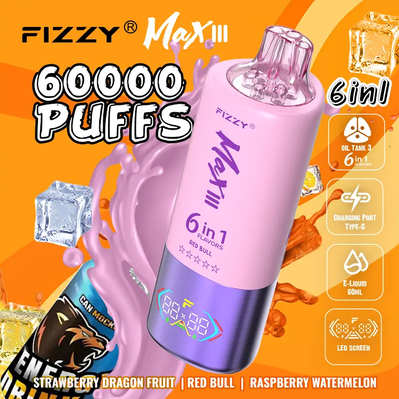Get ready for the ultimate flavor journey with the Fizzy Max III 60000, a revolutionary disposable vape delivering up to 60000 puffs and a 6-in-1 adjustable flavor system—perfect for vapers who crave variety and control.